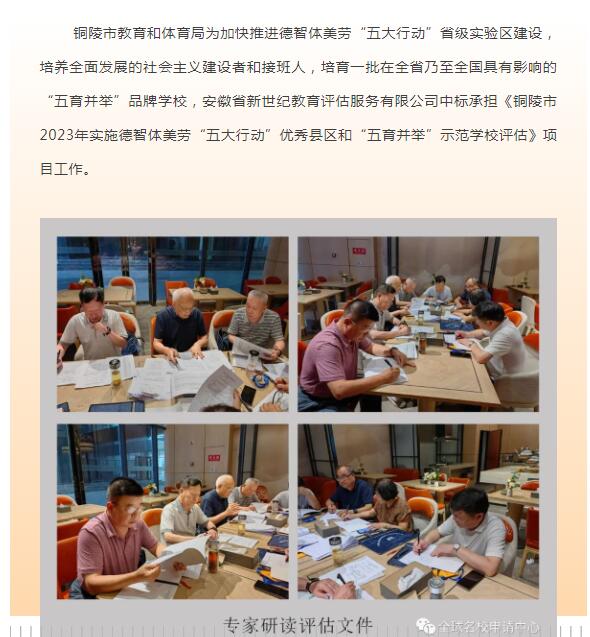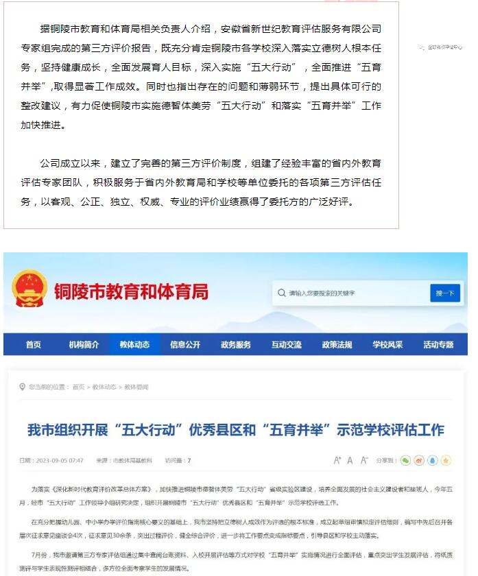 圆满完成铜陵市教育和体育局实施德智体美劳“五大行动”和落实“五育并举”的第三方评估任务。